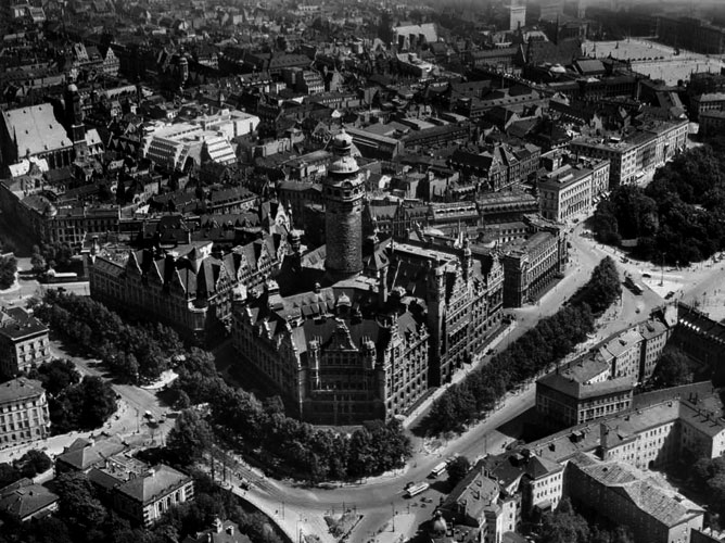 Nach ersten, noch zaghaften Anfängen ab 1909 begann in der Mitte der 1920er Jahre die systematische Erkundung und Dokumentation der zur Großstadt angewachsenen Metropole Leipzig aus der Luft. Im Laufe eines Jahrzehnts schufen die Spezialisten der Hansa Luftbild GmbH und anderer Firmen auf diese Weise ein komplexes Bild der gesamten Stadt einschließlich ihrer Vororte, das den Zustand vor den Zerstörungen des Zweiten Weltkriegs und den anschließenden, teilweise radikalen Änderungen im Raumgefüge und in der Bebauung zeigt. Heinz Peter Brogiato hat aus den im Landesarchiv Nordrhein-Westfalen aufbewahrten Beständen eine repräsentative Auswahl getroffen und sie um Luftbilder aus dem Archiv des Leibniz-Instituts für Länderkunde ergänzt.
