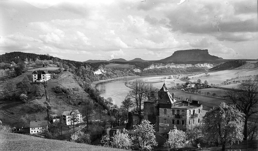 hölzernes Stativ. Der Lohn der Mühe waren atemberaubende Aufnahmen der Sächsischen Schweiz, von Landschaften und Städten, der Elbe und von spannenden, ja abenteuerlichen Kraxeleien der Bergsteiger. Solche Bilder hatte bis dahin noch keiner gemacht, und sie beeindrucken bis heute.“